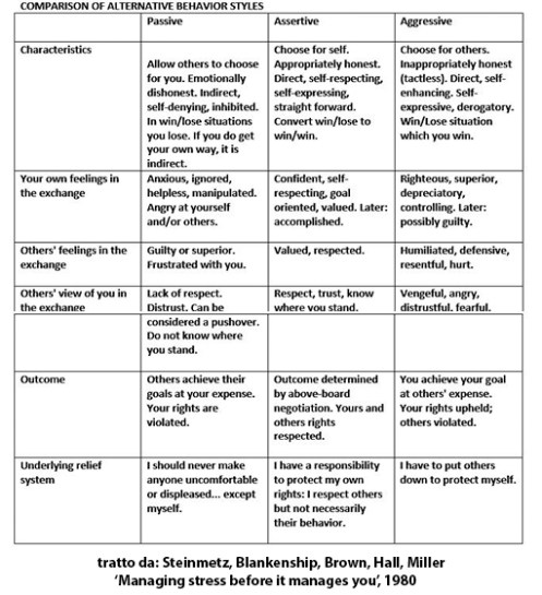 Una strategia costruttiva utile a gestire un confronto dialettico, consiste nel cercare di comprendere se l’interlocutore assume un comportamento Aggressivo, Assertivo, oppure, Passivo.