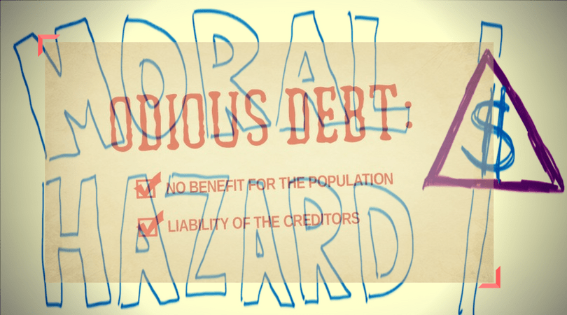 I ‘Debiti Odiosi’, sostenuti e utilizzati per fini che, alla conoscenza dei creditori, sono contrari all’interesse generale di una Nazione, non compromettono il secondo, nel caso in cui la nazione riesca a sbarazzarsi del governo che li incorre, tranne che nella misura in cui i veri vantaggi sono stati ottenuti dalla contrazione di questi debiti” “Diversi autori hanno ulteriormente cercato di sviluppare le opere di Sack e di adattare questa dottrina al contesto attuale. Ad esempio, il Centro per la Legge internazionale sullo sviluppo sostenibile (CISDL) della McGill University in Canada, ha proposto questa generale definizione : “I debiti odiati sono quelli che sono stati sostenuti contro gli interessi della popolazione di uno Stato, senza il suo consenso e con pieno consapevolezza dei creditori.
