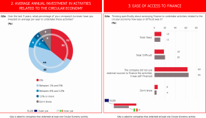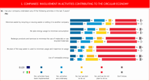 Solo il 3% delle aziende italiane intervistate dichiara di essere a conoscenza e di avere usufruito dei piani governativi di supporto all’Economia Circolare, il 25% di essere solo a conoscenza, mentre il 16% non ha capito di che si tratta e il 55% dichiara di non averne conoscenza.