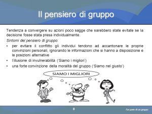 • Polarizzazione: il gruppo può spingersi verso scelte più estreme rispetto alle posizioni iniziali dei singoli.