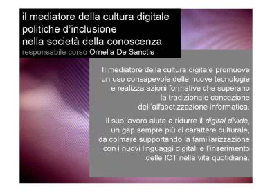 Per questo motivo abbiamo definito, in collaborazione e gli auspici Istituzionali, già nel 2004, l’inderogabile necessità di istituire una nuova figura professionale utile a contrastare queste disabilità: il Mediatore della Cultura Digitale.