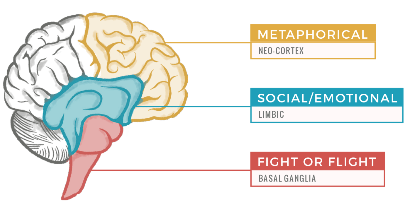 MacLean classifica questi tre cervelli in tre stadi evolutivi degli organismi biologici, a partire dal periodo rettiliano, passando per il paleo-mammifero per arrivare al neo-mammifero. Tronco cerebrale e il Cervelletto sono la sede del ‘Cervello rettiliano’, il Sistema Limbico è la sede del ‘Cervello Paleo-Mammifero’, la neocorteccia è il Cervello Neo-Mammifero’.