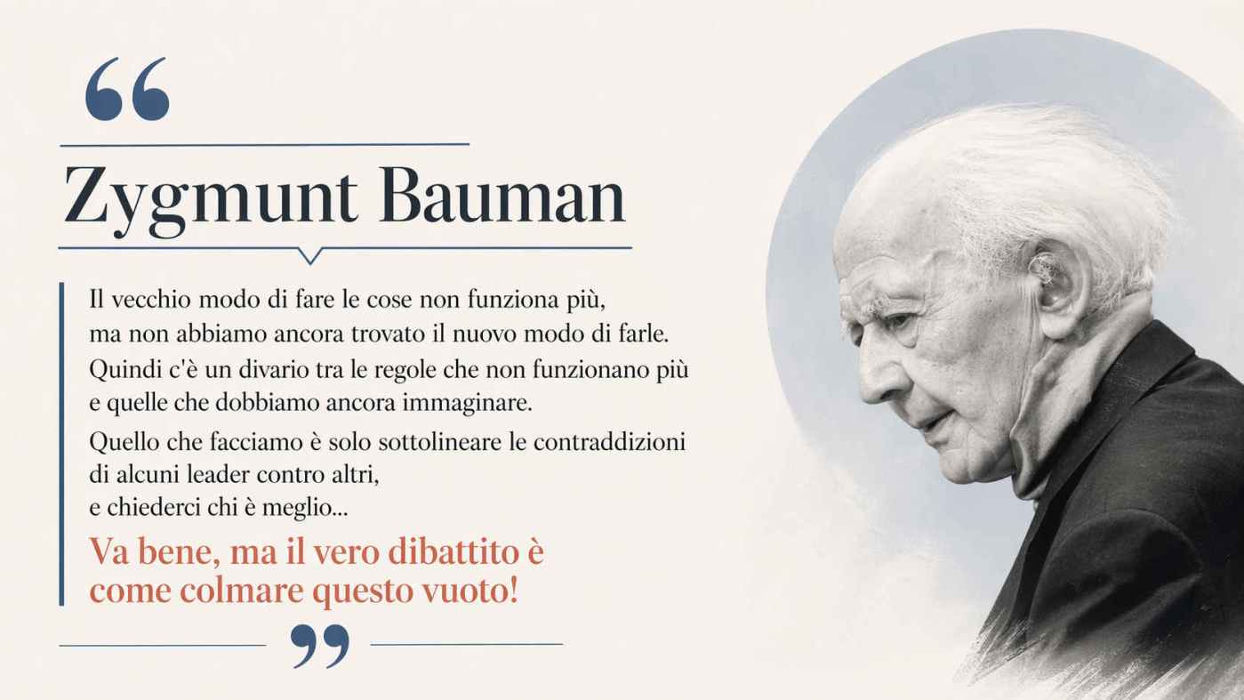 Bauman ci costringe a guardare proprio lì. Non nella sola contesa tra attori, ma nel vuoto che quella contesa spesso nasconde.
