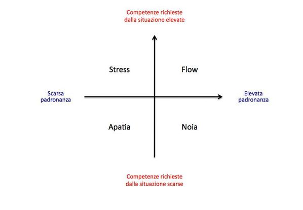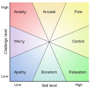 Per raggiungere uno stato di Flusso, un “equilibrio deve essere raggiunto tra la “sfida del compito e l’abilità del performer. Se il compito è troppo facile o troppo difficile, il Flusso non si può verificare. Entrambi sia il livello di abilità che il livello di sfida ( le competenze richieste dalla situazione in cui ci si trova impegnati) devono corrispondere ed essere alti; se l’abilità e la sfida sono entrambi bassi insorge nel risultato l’Apatia.”