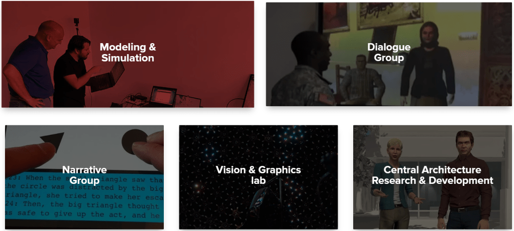 - Addestramento militare: l’ICT sviluppa tecnologie per la creazione di simulatori di addestramento militare ad alta fedeltà, in grado di fornire esperienze immersive e realistiche per migliorare la preparazione dei soldati in diversi scenari operativi. Ad esempio, l’ICT ha sviluppato il sistema “Virtual Iraq/Afghanistan”, un simulatore di addestramento che consente ai soldati di acquisire esperienza in situazioni di guerra simulando situazioni di combattimento e interazione con la popolazione locale