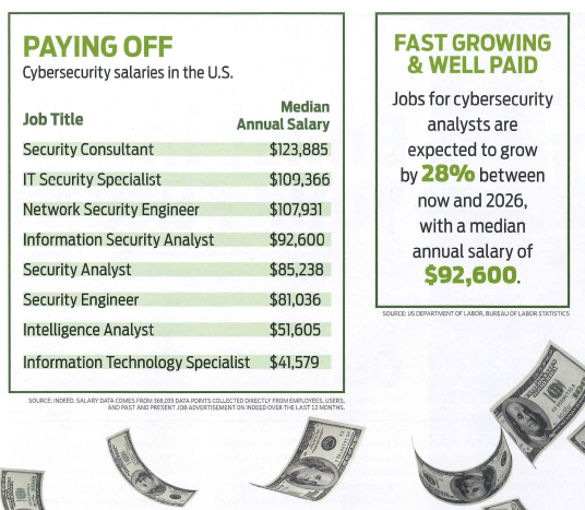 Le assegnazioni militari si basano su test di attitudine che ogni ramo del servizio utilizza per determinare dove il candidato deve essere collocato, ma è possibile richiedere l’assegnazione a comandi specifici e utilizzare il tempo libero per sviluppare le competenze informatiche e le certificazioni di cybersicurezza per qualificarsi per i comandi legati ai diversi settori di cybersecurity. L’esercito offre formazione e copre i costi della formazione, incluso l’apprendimento delle lingue straniere, che, combinato con le competenze tecnologiche, costituisce la solida base per la carriera nella sicurezza informatica. Dopo il periodo trascorso in forza nell’esercito, il militare può lasciare il servizio e utilizzare i programmi specifici definiti dal governo per i veterani, che possono finanziare percorsi di alta formazione in sicurezza informatica e permettere al militare in congedo di accedere ad una carriera professionale nel mondo civile in una delle tante aziende di servizi, nell’industria o nelle agenzie governative che hanno sempre più bisogno di personale altamente qualificato in questo settore. I salari annuali d’ingaggio nella Cybersecurity negli Stati Uniti variano dai 123.000 dollari per un Security Consultant ai 42.000 dollari per la posizione base dell’Information Technology Specialist.