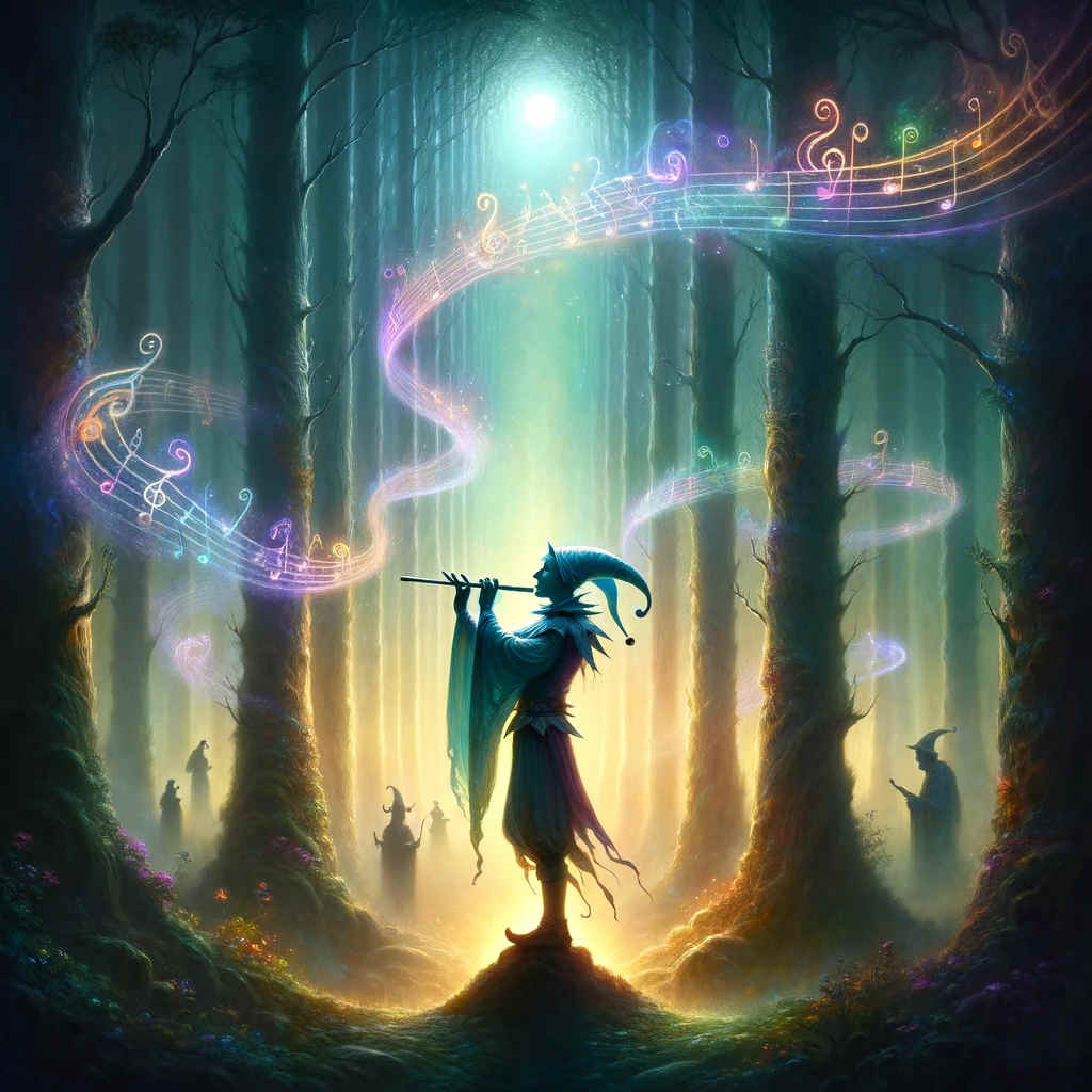 Ma un giorno, una nebbia di smarrimento avvolse la valle. Gli abitanti si trovarono perduti, incapaci di vedere oltre le ombre che offuscavano la loro visione. In questo momento di incertezza, il Giullare scoprì un flauto d’argento, nascosto tra le pieghe del tempo, capace di suonare melodie che potevano cambiare il corso del destino.