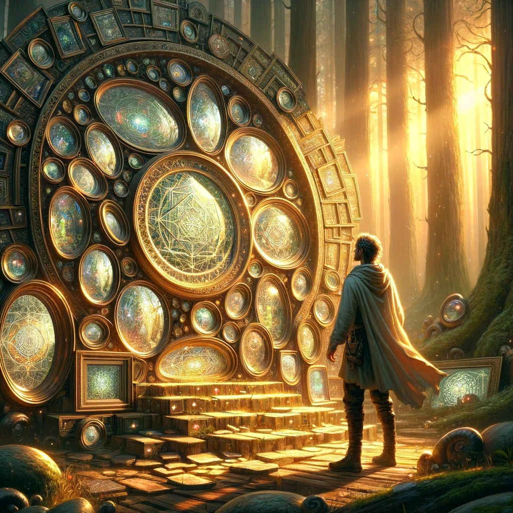 L’Artista, con la sua abilità, creò un mosaico di specchi magici che riflettevano non solo le immagini, ma anche l’anima di chi vi si specchiava. Il Saggio, poi, formulò una melodia di verità, una canzone così profonda che poteva risvegliare gli spiriti più assopiti.