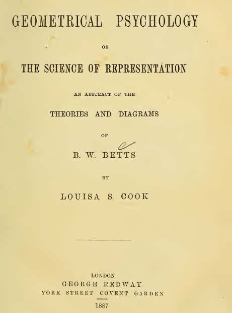 Louisa S. Cook è stata la curatrice e coautrice dell’opera Geometrical Psychology, or, The Science of Representation (1887), in cui raccolse, ordinò e pubblicò i diagrammi originali di Benjamin Betts dopo la sua morte. Cook fu fondamentale nel trasformare l’opera di Betts in un libro pubblicabile: non solo raccolse e sistematizzò le centinaia di tavole geometriche da lui lasciate, ma ne curò anche la spiegazione teorica e la contestualizzazione filosofica. Nell’introduzione del libro, Cook offre una visione personale sull’importanza del lavoro di Betts, sostenendo che questi diagrammi non siano solo esperimenti grafici, ma vere e proprie rappresentazioni dei processi di evoluzione spirituale e mentale dell’essere umano.
