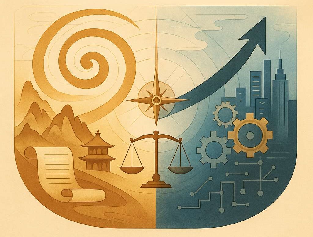 Il dinamismo confuciano, invece, suggerisce una visione più ecologica del cambiamento. Un tempo che non cancella, ma sedimenta. Un’evoluzione che rispetta le forme precedenti e le utilizza come base per andare oltre. Non si tratta di immobilismo, ma di trasformazione riflessiva. Il cambiamento non è meno potente perché non è visibile subito. È meno violento, ma più profondo. Meno eclatante, ma più durevole.
