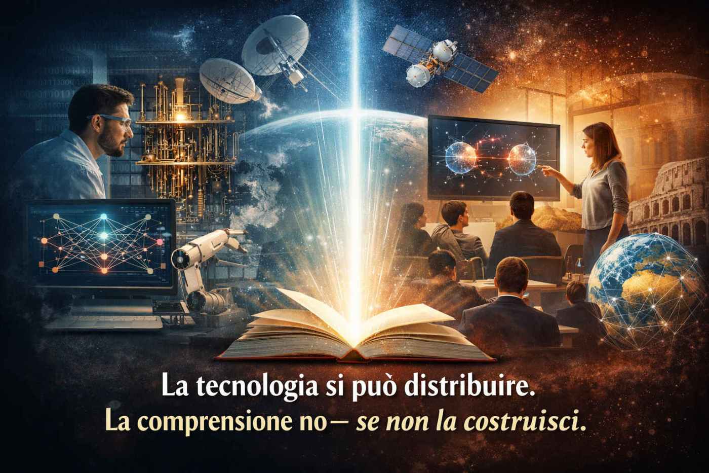 Questo vale ancora di più oggi, in una fase storica in cui temi come intelligenza artificiale, fisica quantistica, biotecnologie, cybersicurezza, sensoristica avanzata e nuove piattaforme computazionali non riguardano più soltanto chi lavora nei laboratori o nei centri di ricerca. Riguardano il modo in cui una società costruisce la propria idea di futuro, prende decisioni, forma le nuove generazioni, orienta gli investimenti, si colloca nello spazio europeo e internazionale.