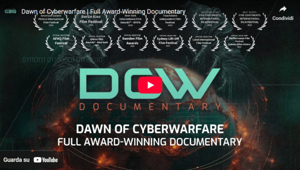 โDawn of Cyberwarfareโ: la guerra digitale invisibile che colpisce cittadini e societร . Educazione al rischio, igiene digitale, AI e vulnerabilitร quotidiana: per questo lo rendiamo libero alla visione, con sottotitoli in italiano