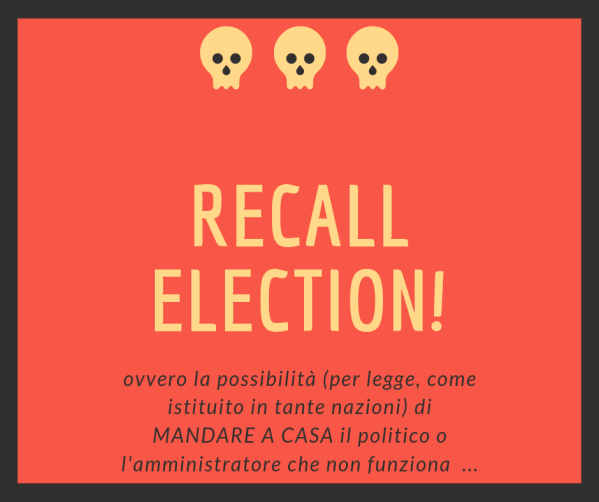 La Revoca del Mandato รจ una procedura con la quale gli elettori possono rimuovere un politico o un altro funzionario eletto in un pubblico ufficio attraverso una votazione diretta, prima che il suo mandato elettorale sia terminato. ... E se venisse istituita anche in Italia? Con il termine RECALL ELECTION (o REVOCA dell'ELETTO)ย  si indica... Continua a leggere →